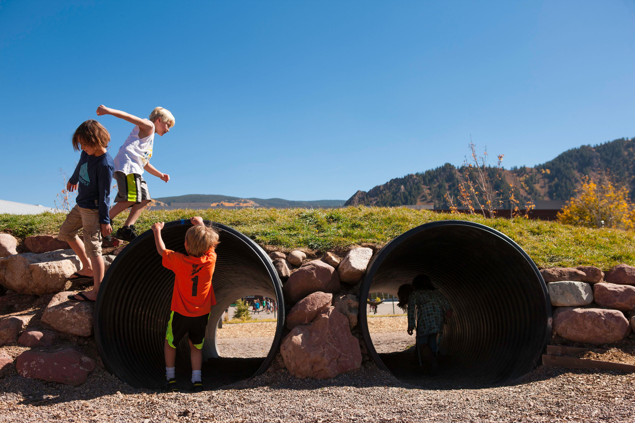 Connect One drew on the surrounding environment of the school to create a playground that was inclusive of all ages and abilities at the school. The design celebrates the Rocky Mountain environment with playful interpretations of the geologic past, mining history, and fascination with outdoor sports including climbing, sledding, and even off-road driving. The design facilitates active, cooperative, creative, dramatic, and manipulative play while helping children explore social and environmental concepts. Many of the elements included were built or provided by the community to maximize the financial savings to the school, and allow them to construct a more exciting, engaging, and inclusive space for the children.