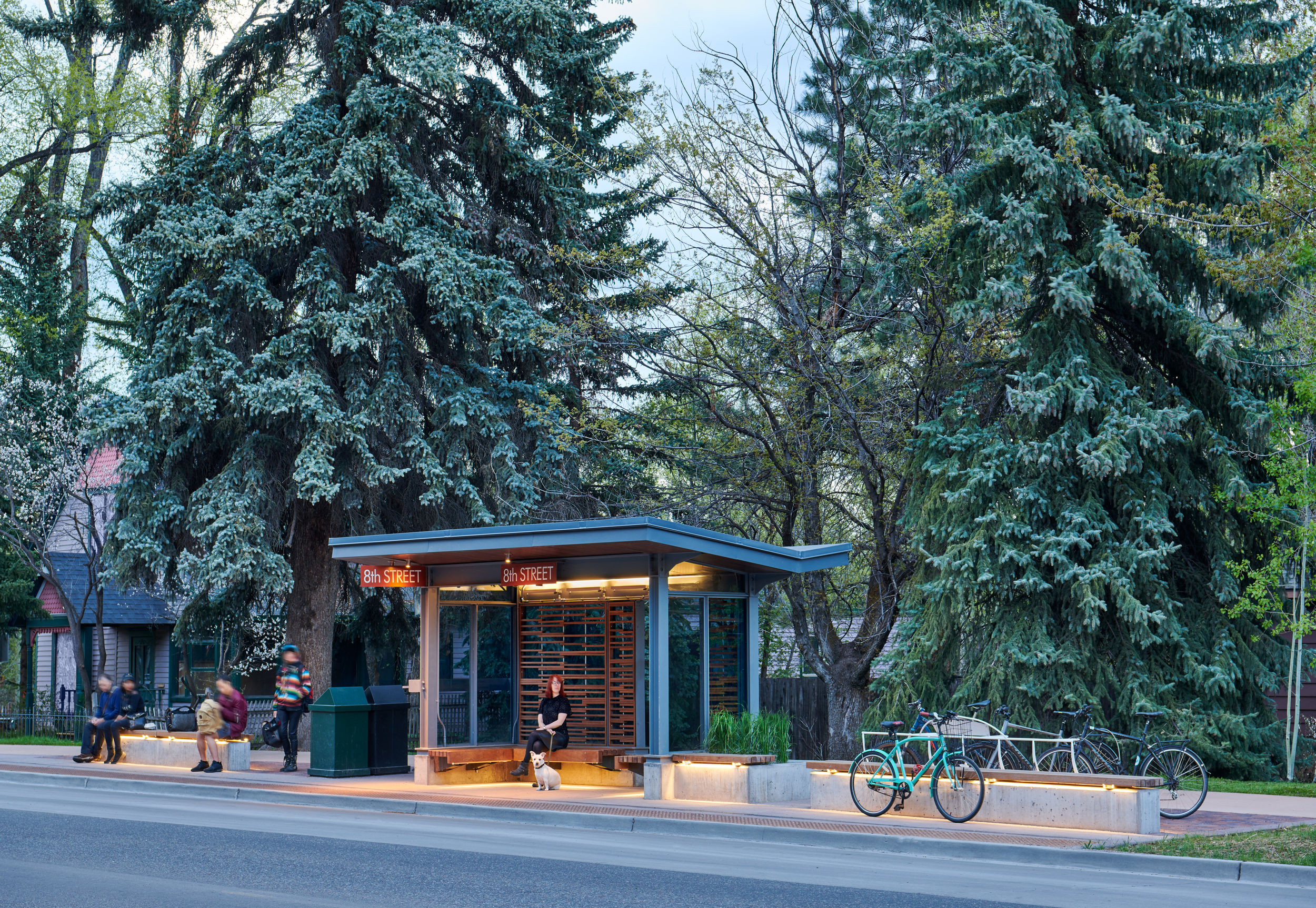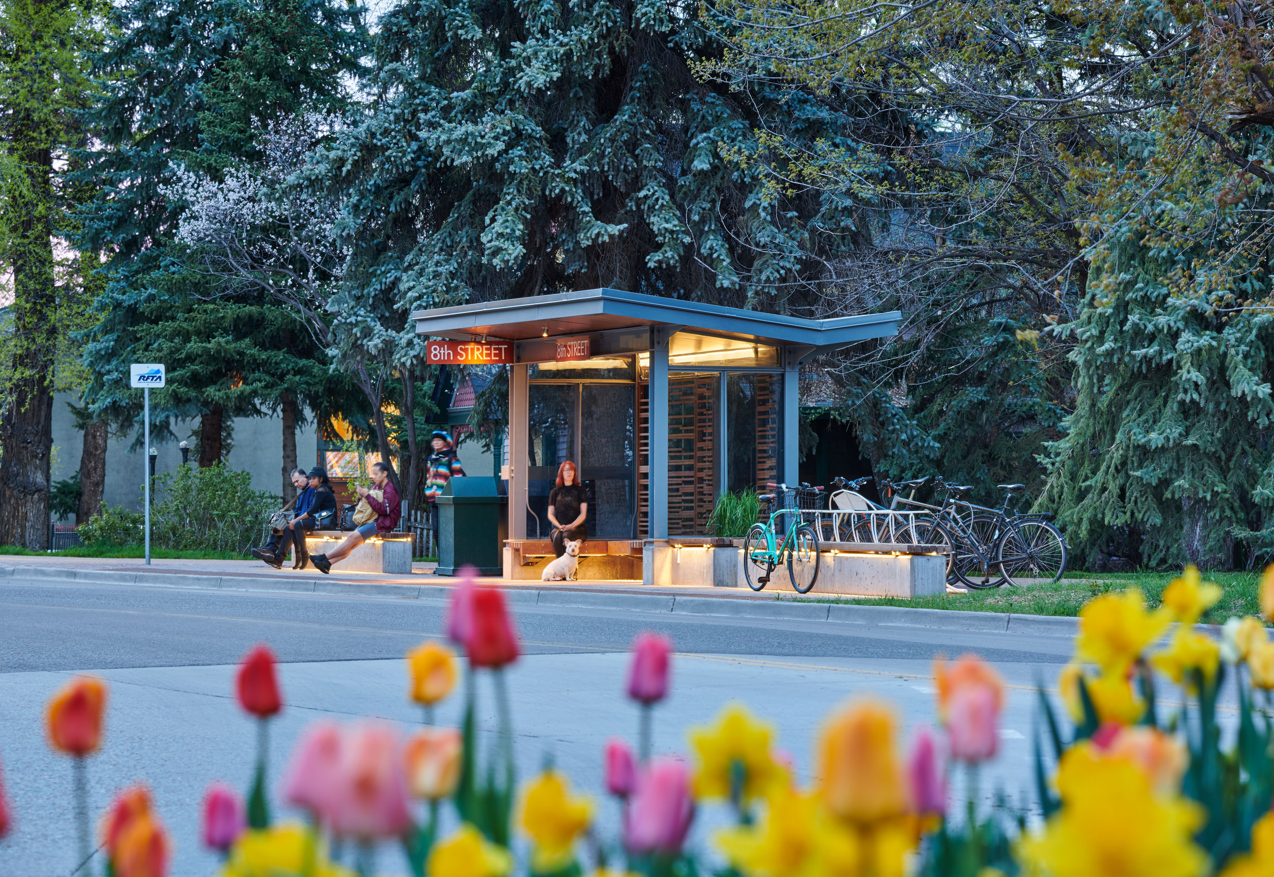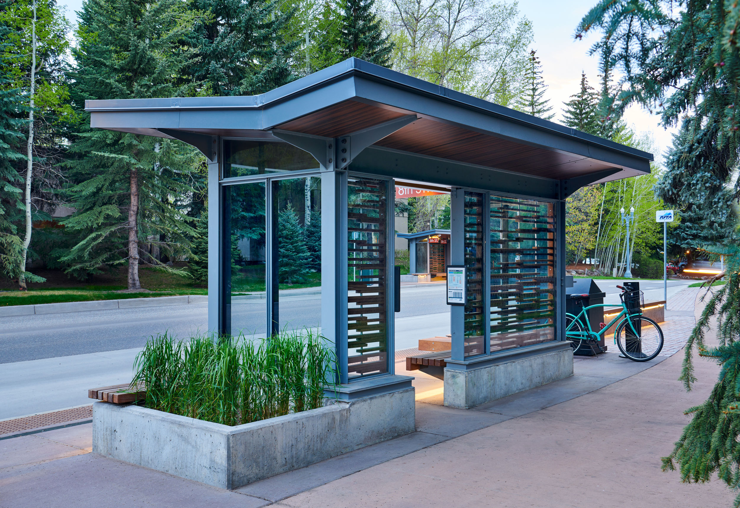 In 2015, the City of Aspen Open Space and Trails Board identified the area from Cemetery Lane to West Hallam street along Highway 82 as a safety concern for pedestrians, cyclists, and motorists. The existing narrow, winding trail with poor sight lines and an obstructing bus stop prohibits pedestrian travel along the corridor. In 2016, after reviewing structural constraints, the City of Aspen conducted a ‘living lab’ to test an 8-foot pedestrian trail and 11-foot traffic lanes along Castle Creek Bridge. After a successful testing period, Connect One Design and Z Group Architects were hired to design new bus shelters to match other existing Valley bus stops. The new station was designed to include a bike share rack for 15 bicycles and complements the new pedestrian path extending from the bridge to Aspen’s West End. The path carefully weaves through existing mature trees and creates an inviting and highly functional corridor.