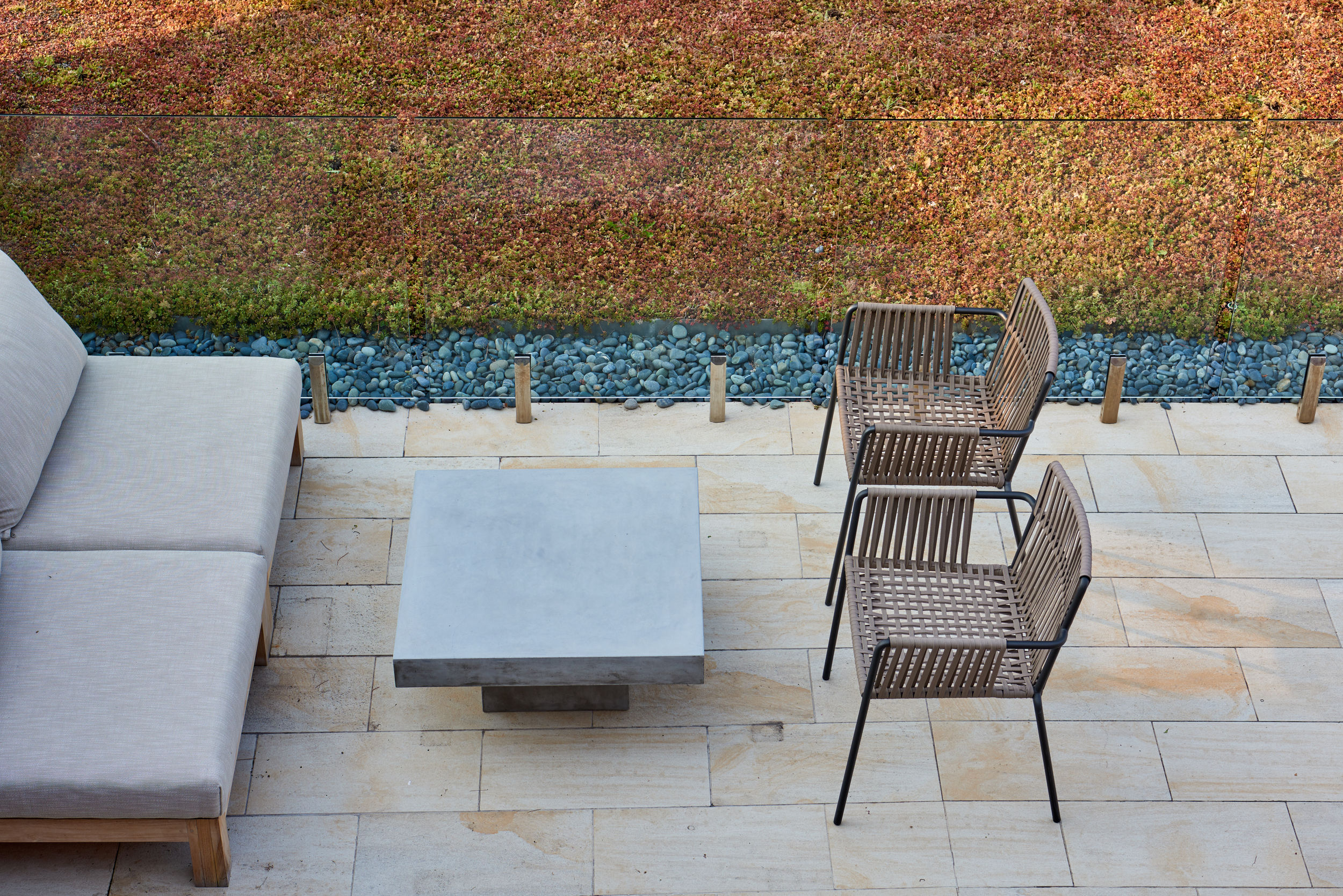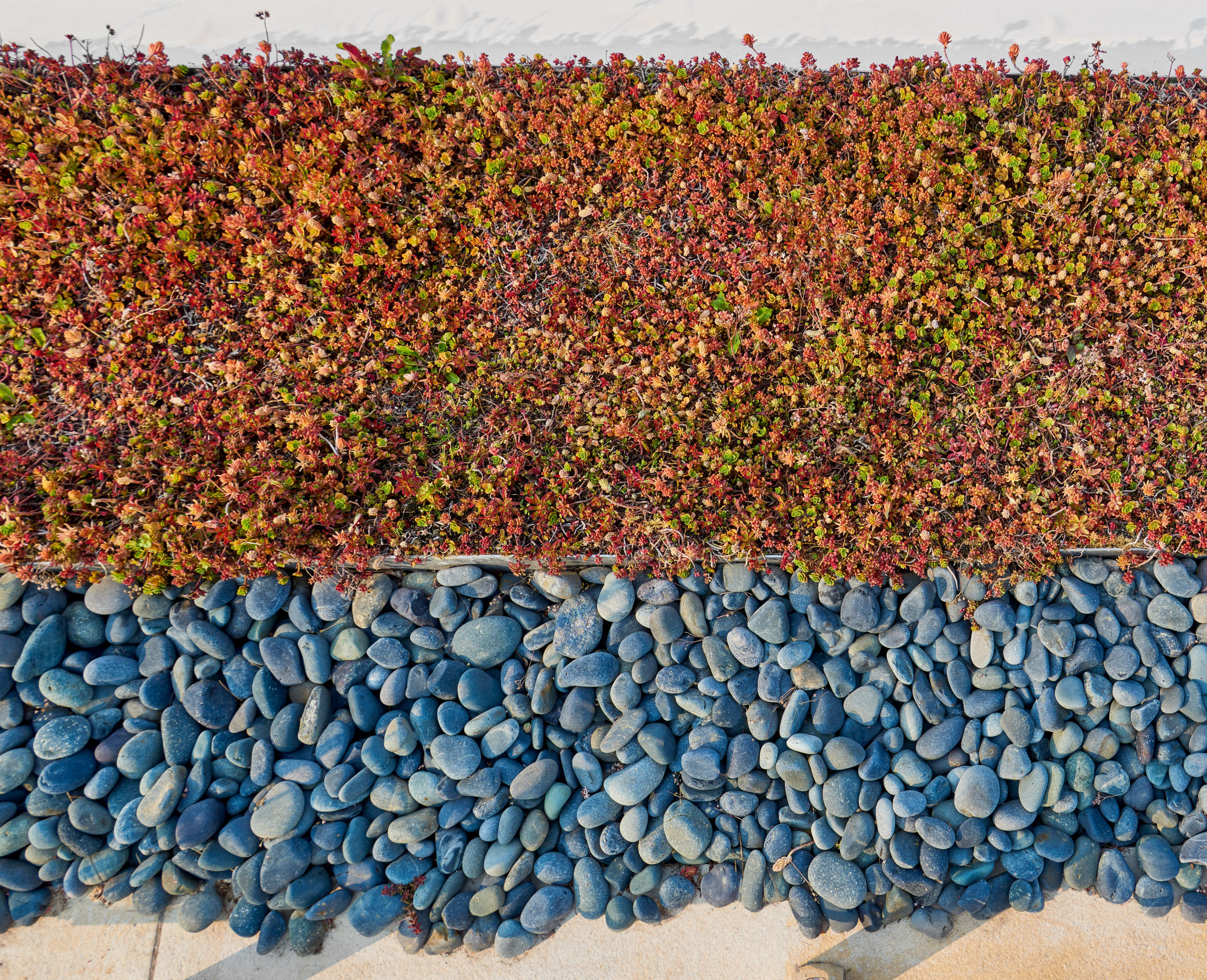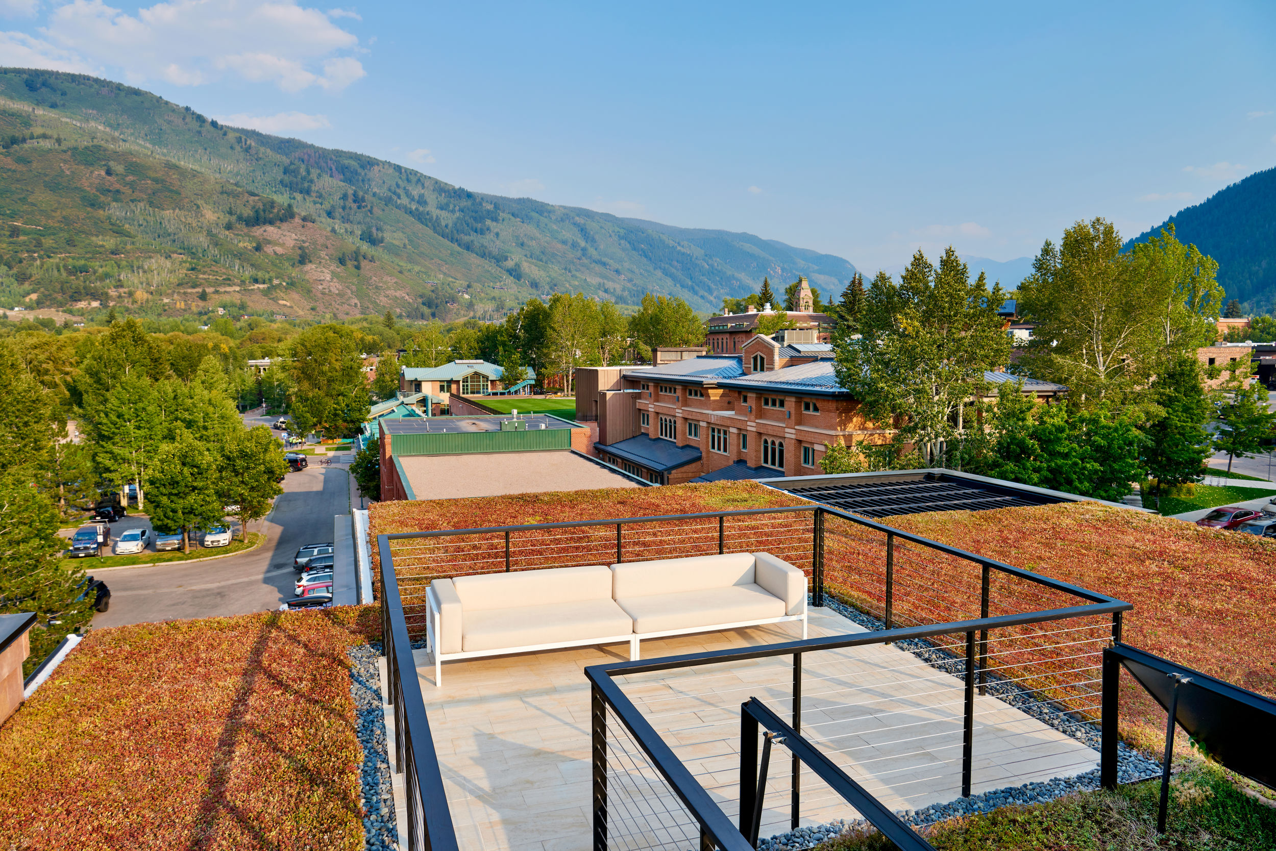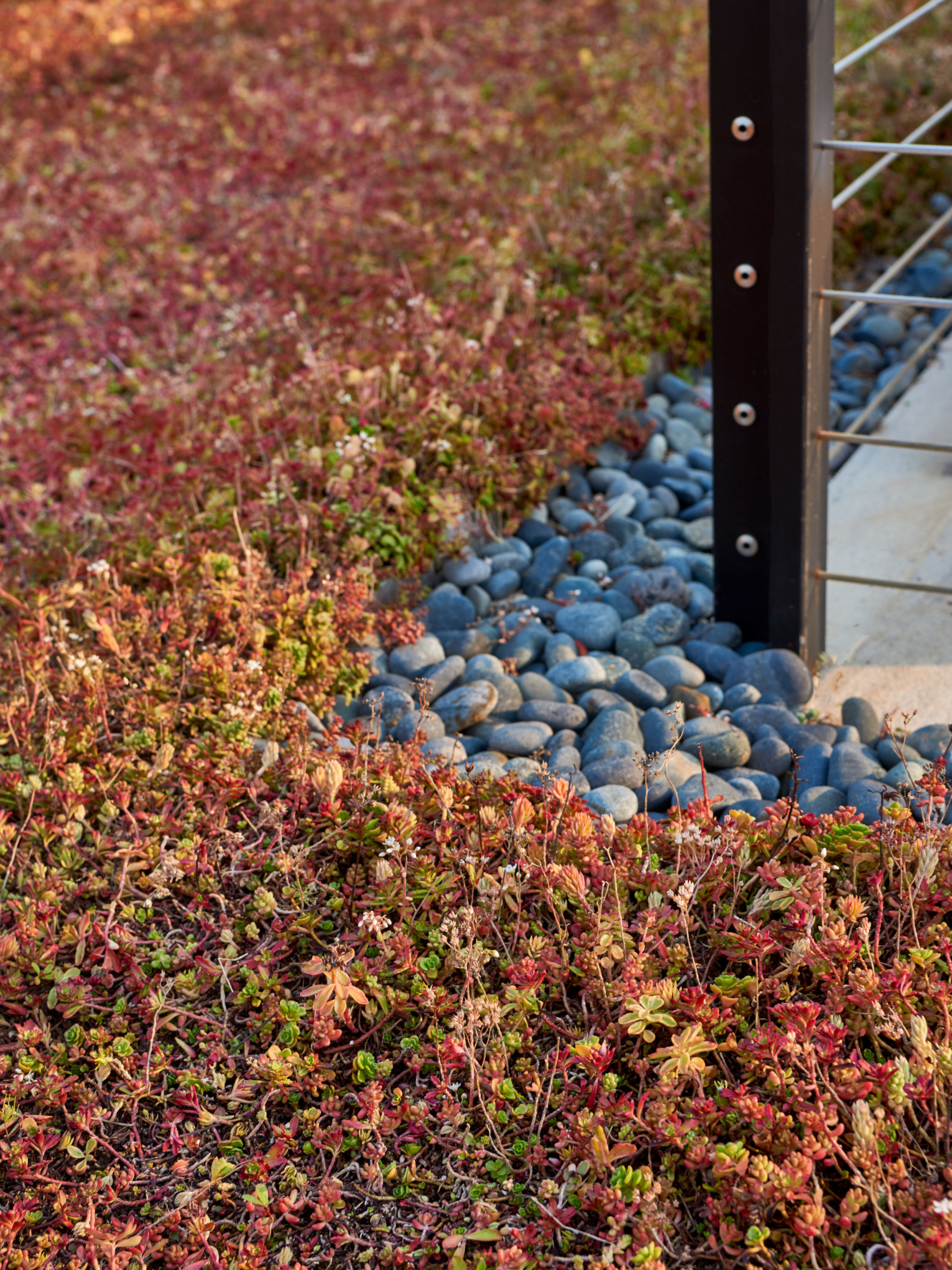 These four luxury penthouses north of the Hotel Jerome were designed by David Johnston Architects. Upon completion in 2016, the roof deck was the largest vegetated roof in Aspen, coming in at 3,100-square feet. Connect One Design carefully chose a variety of sedum to create a colorful, durable perimeter to the activated roof space. The vegetated roof also helps the building owner maintain stormwater quality and control water runoff.