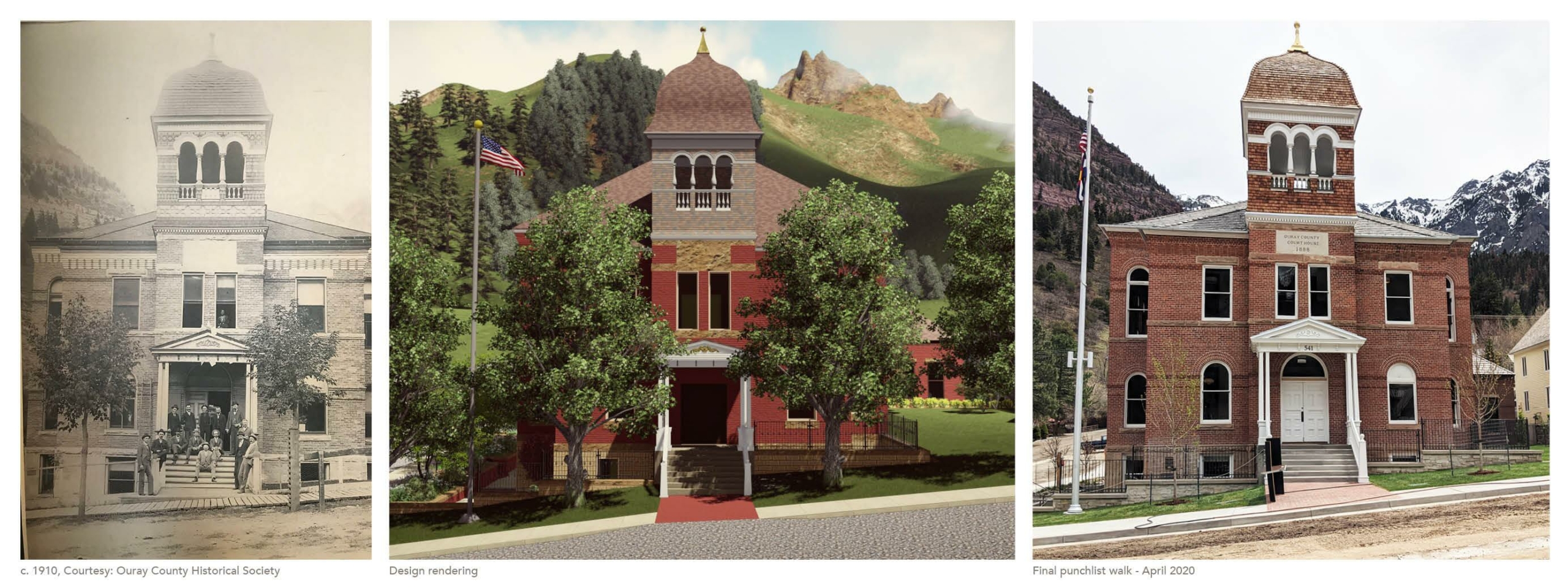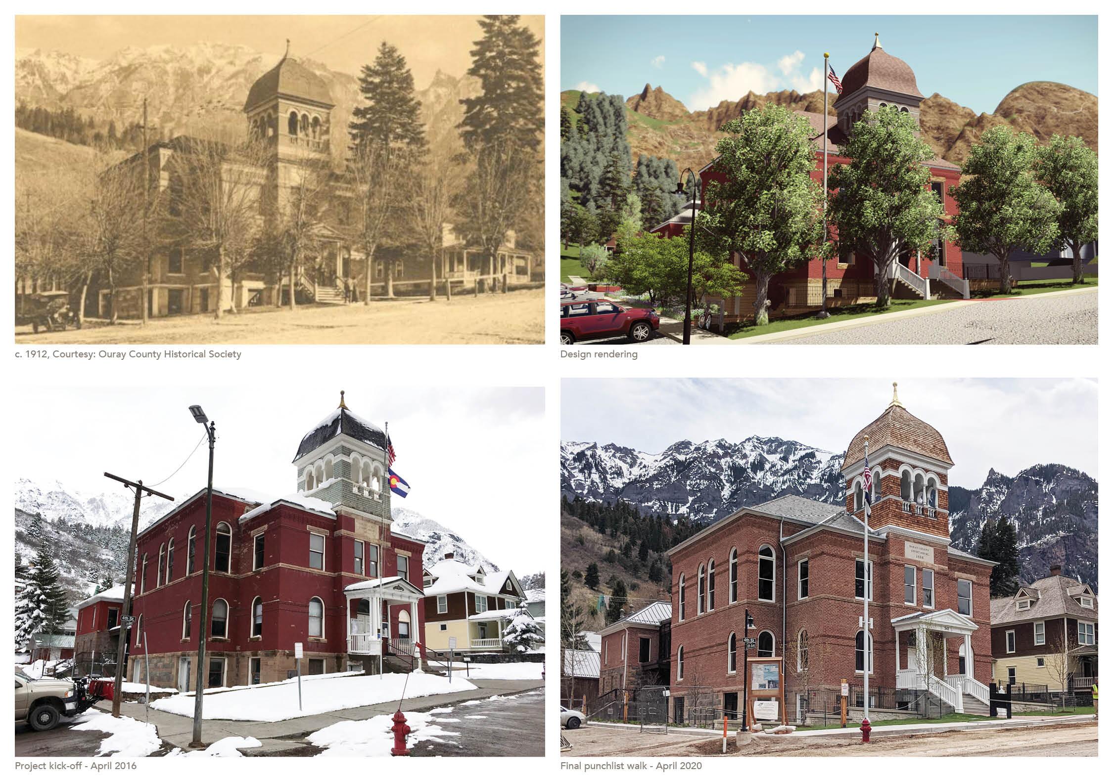 Since its construction in 1888, the Ouray County Courthouse has undergone a series of renovations and building additions to meet the expanding needs of the County staff and personnel. Connect One Design was selected to join a team of consultants to examine the condition of the historic county courthouse in Ouray, Colorado, which in places had fallen into a state of uninhabitable disrepair.