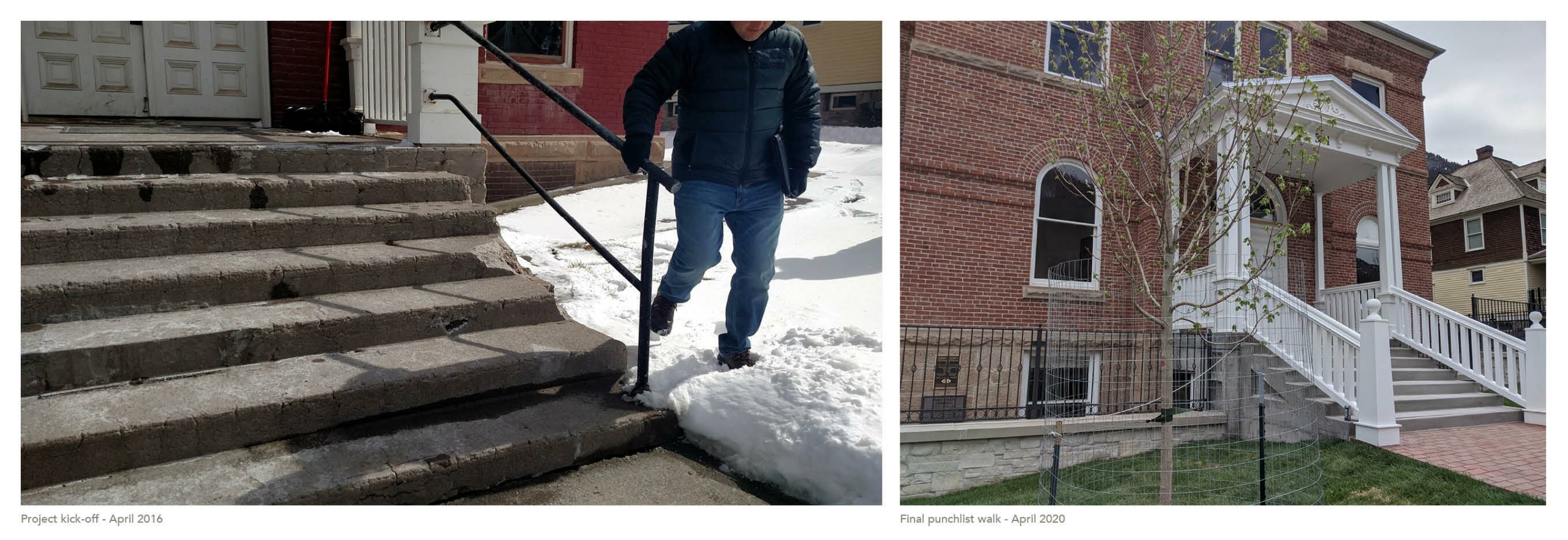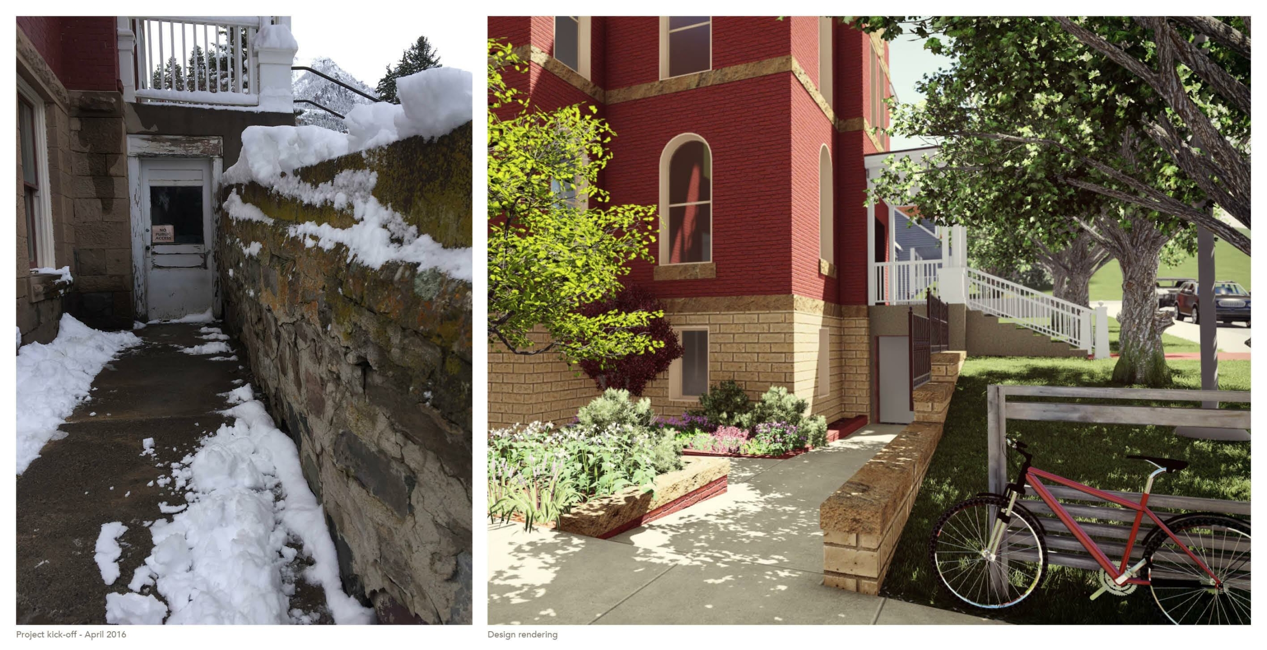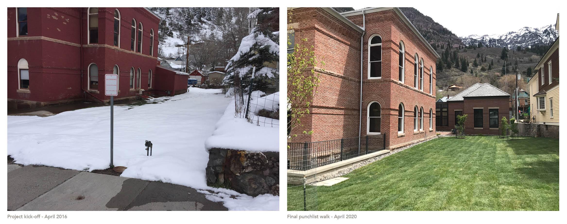 By means of historic photographs and other archives, Connect One was able to identify how the exterior spaces were originally designed and intended to be used prior to an avalanche, after which the structure was altered and reformed into a state of architectural defense, with little regard to the free classic Queen Anne style of its foundations. Connect One examined all aspects of the site and made recommendations as to how the facilities could be brought up to code compliance and how features such as the retaining walls, plant material, railings, courtyards, irrigation systems, etc. could be restored to meet today’s needs, as well as be loyal to the historic intent. The State Historic Fund and the Ouray County Historical Society reviewed design iterations for compliance and accuracy.