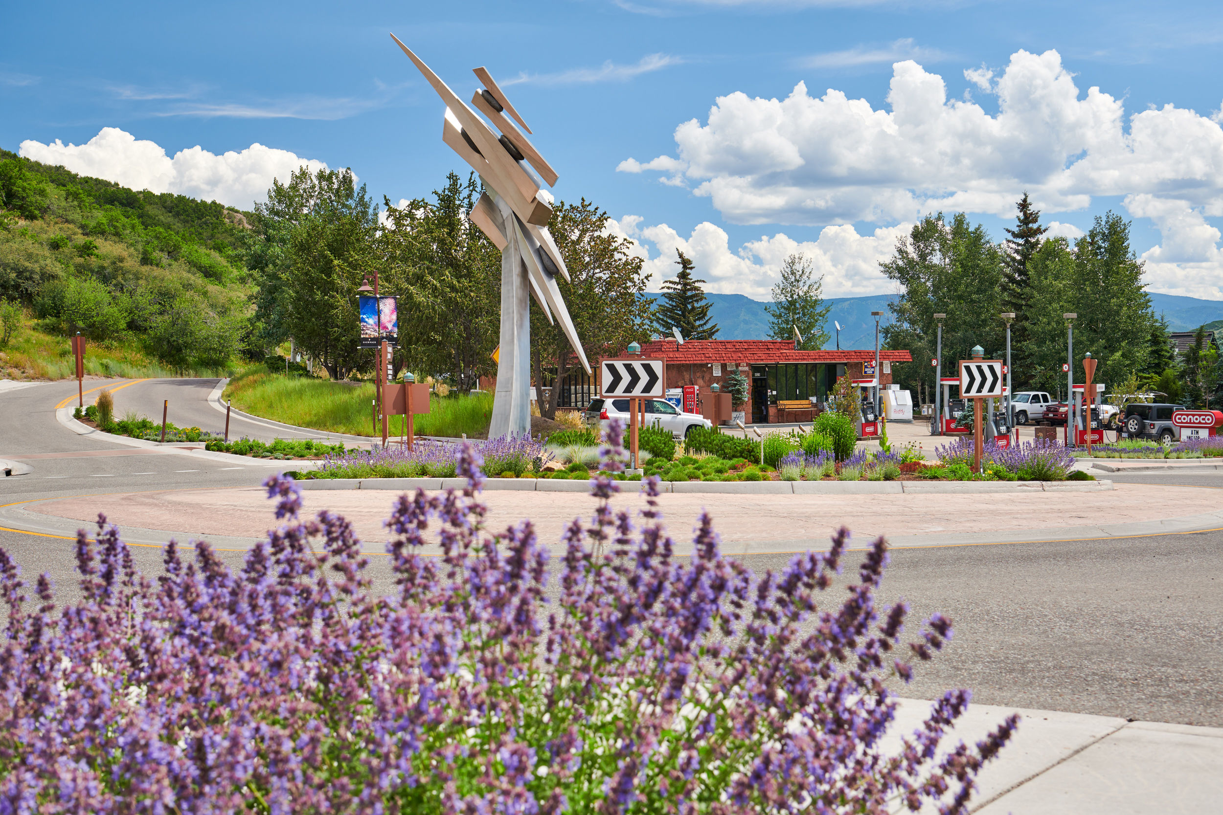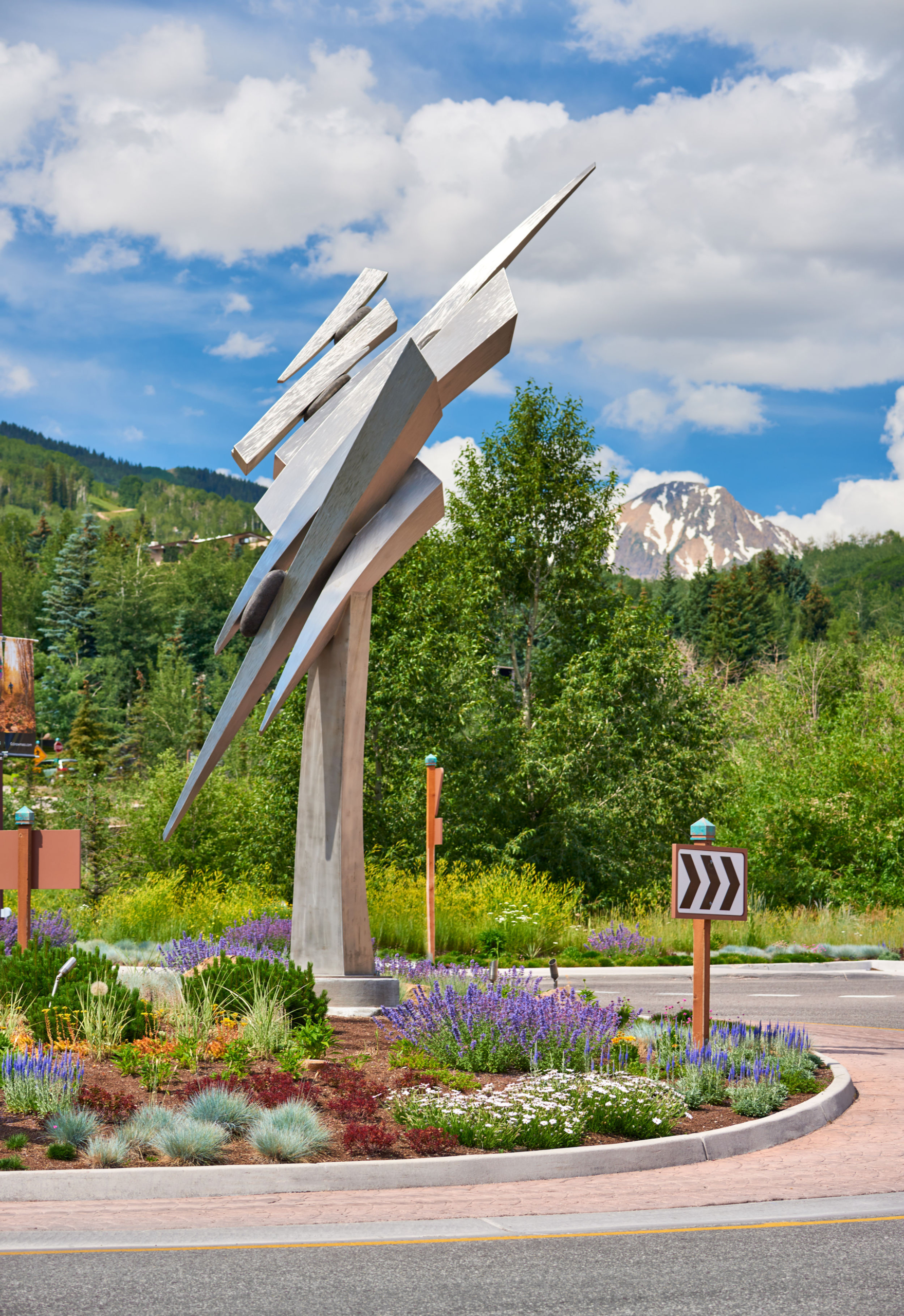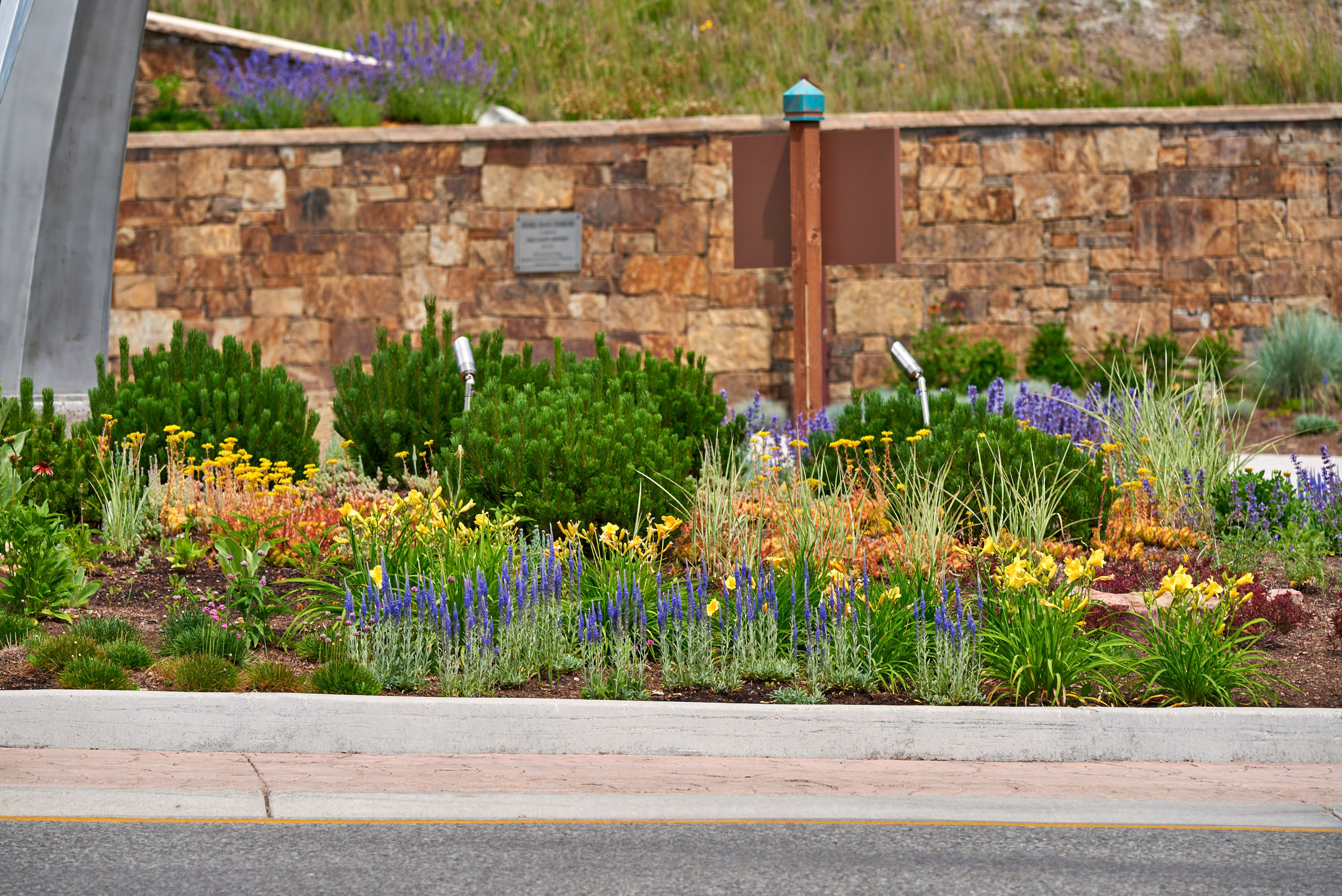 The Town of Snowmass Village recently added a roundabout at the busiest intersection in the community, which is also the entrance to its iconic lodging area and ski hill. Connect One Design was selected to create a hardscape and planting palette that provided four-season interest and signified an arrival threshold into the heart of this world famous resort. The hardscape materials borrowed hues from the adjacent rock formations, with way-finding texture differentiations between crosswalks, sidewalks, and truck aprons. The plant material was composed of a combination of native and adapted species that reflect the beauty of the surrounding natural areas, and is able to bring four-season interest while surviving in sometimes harsh roadside conditions. The landscape also acts as a beautiful setting for a new art piece commissioned by the Town. The roundabout was opened in the fall of 2016, with all remaining plant material being installed by July 2017.