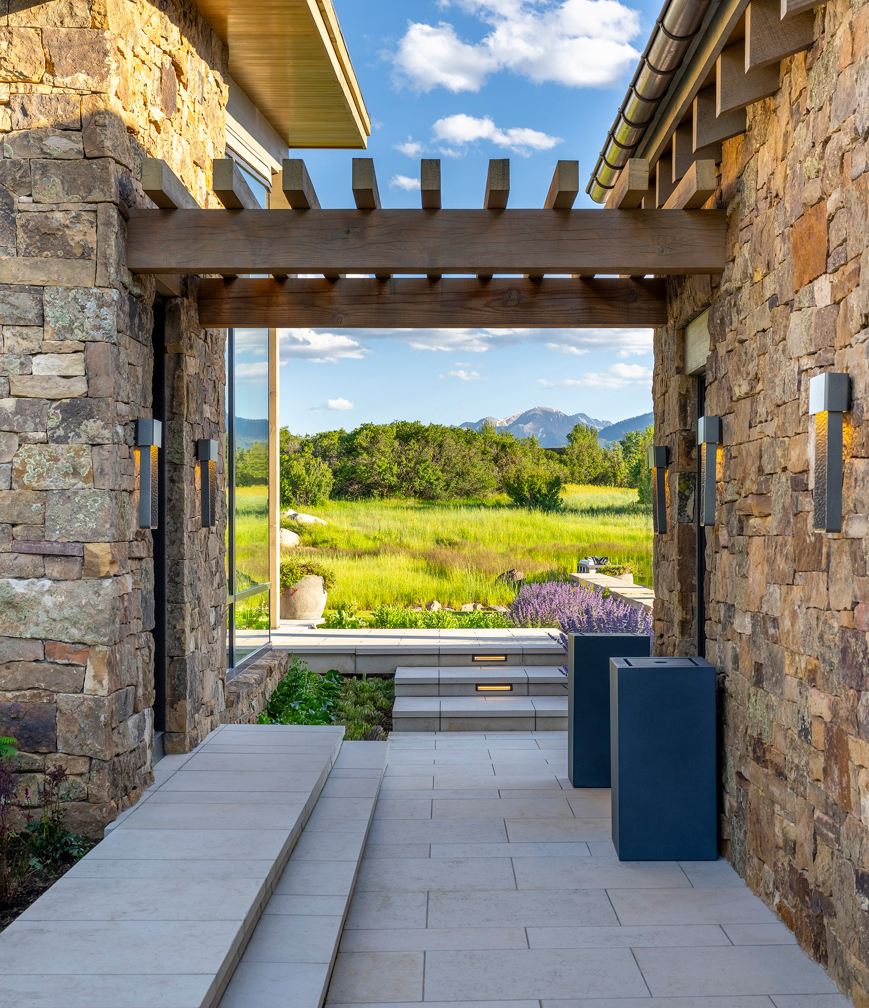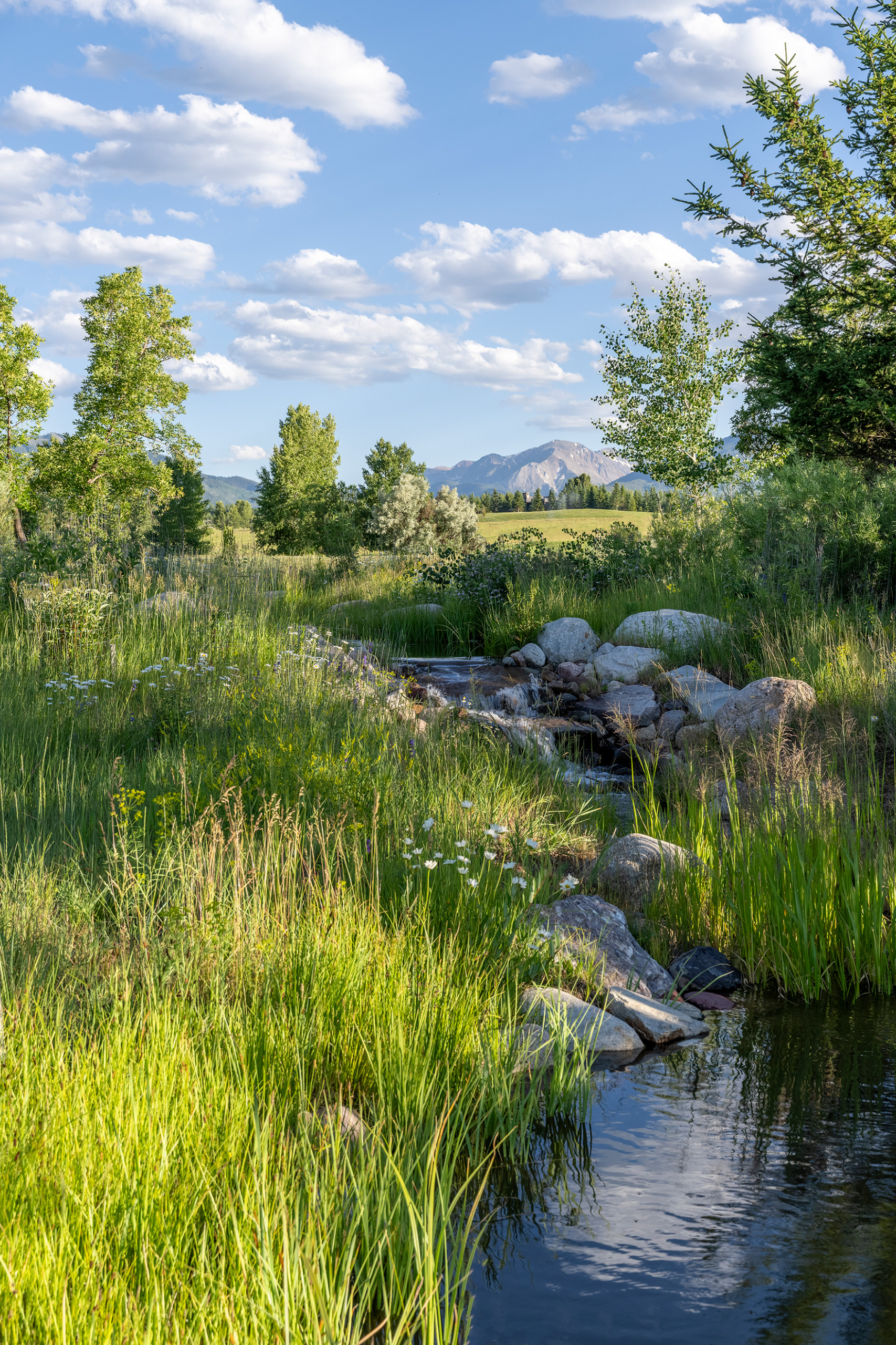For this 40-acre property, Connect One Design applied a trifecta principal: design every element to fulfill economic, social, and spiritual needs. The property in the prestigious Star Mesa subdivision was designed to be completely off the grid and contribute zero landfill waste. Features include ecologically revitalized ponds fed by a constructed wetlands, a heated swimming pool using the harnessed heat of the terraces and solar thermal technologies, vegetated roofs, and a meadow converted from hay to wildflowers. Additionally, as part of the property master planning which was developed using permaculture principals, Connect One Design proposed a number of destination points connected by two miles of hiking trails. These destination points include a restored fishing pond and boardwalk, an overlook with geological signage, a tea house, a shelter, a teepee, and a large fire bowl with stone seating.
