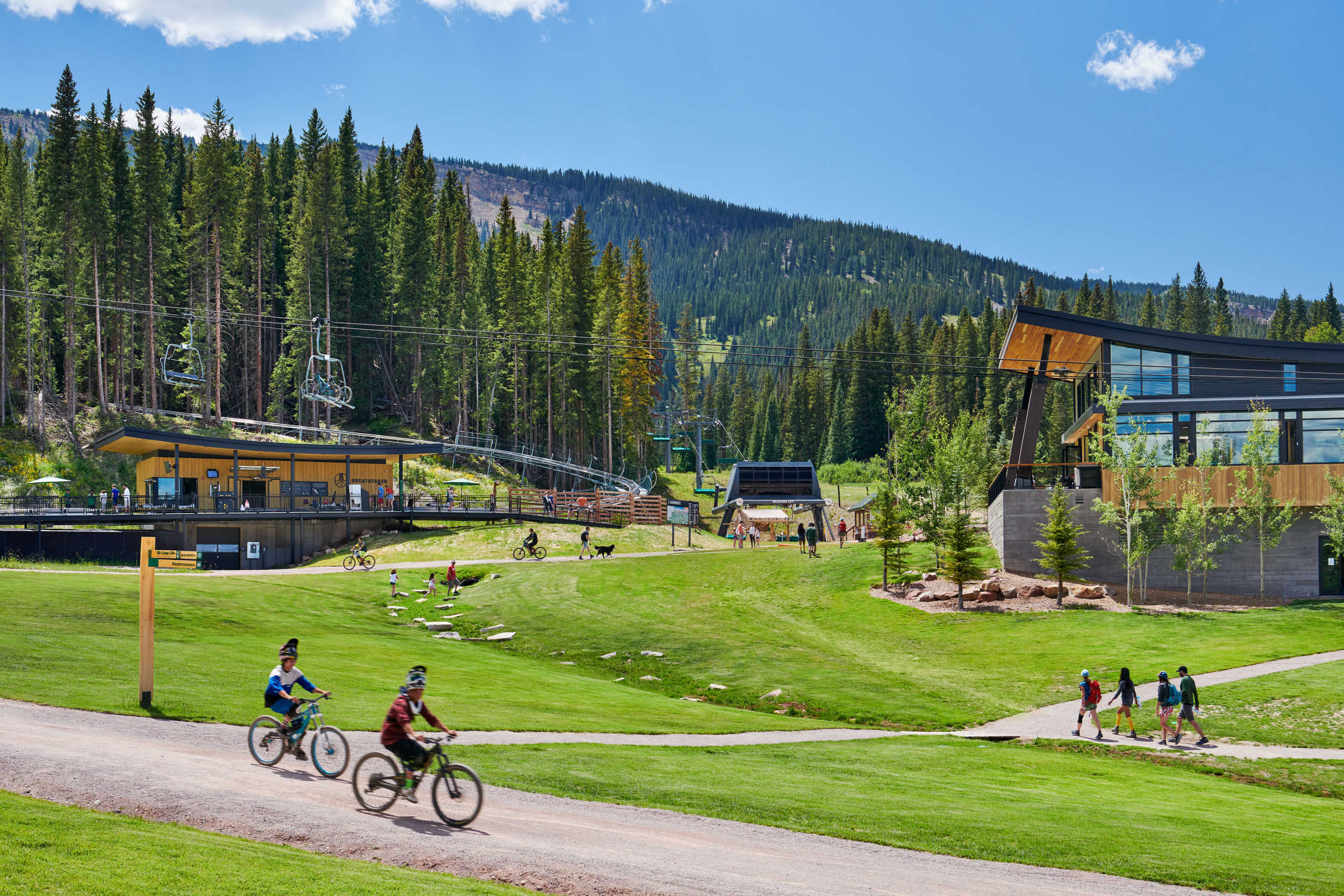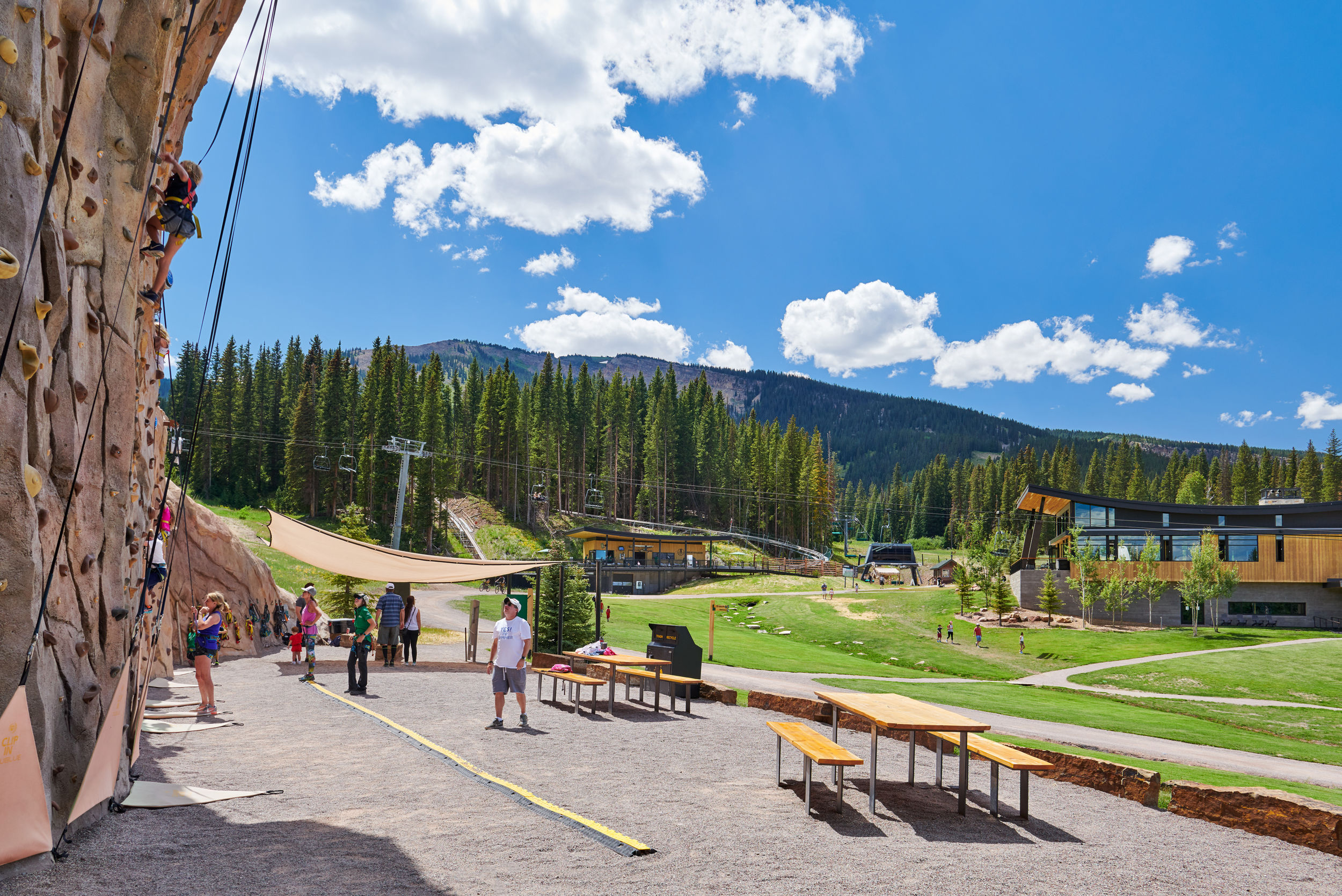 To draw a larger visitor base to Aspen Snowmass in the summer season, the Aspen Skiing Company decided to develop their summer programming at the Snowmass Ski Area. For this project, Connect One Design provided landscape architecture and planning services for the new Elk Camp Landscape and other mountain summer activities, including hiking and biking connectivity, a climbing wall, an alpine coaster, a zip line course, an amphitheater, and a summit viewing area. Our role also included oversight of venue designs, coordination and submission of drawings from all disciplines, and navigation of the United States Forest Service review process. In addition, we developed ORAR compliant paths, improved drainage solutions, and researched and further developed high elevation sod specifications to ensure the long-term success of this landscape. In a careful collaboration with CCY Architects, the SE Group, and the Aspen Skiing Company, Connect One Design was able to seamlessly integrate all program elements into the natural surroundings.